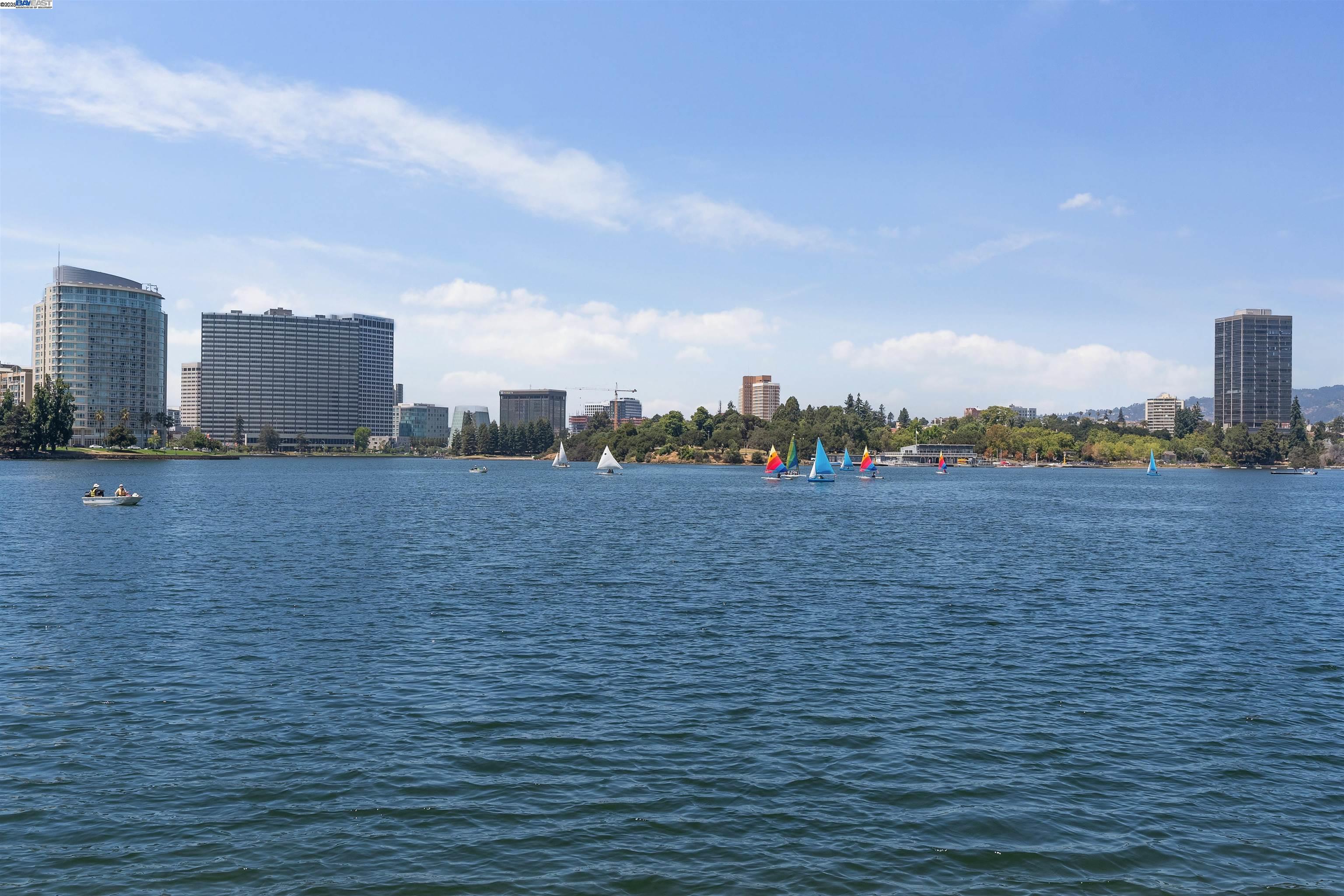 Adorable, sun-filled, one bedroom Condo in a beautiful Art Deco building right on Lake Merritt! The Condo is very bright and quiet as it is located on the south facing side of the building on the second floor, but the lake is just steps away for owners to enjoy whenever they want! You even have a peek-a-boo view of the lake from the bedroom! This Condo features a large kitchen, a living/dining room combo and a spacious bedroom, all with lovely natural wood floors, and there are newer dual pane windows as well! It also comes with it's own garage, which is located in the back of the building, and there is a no fee community laundry facility in the basement! With easy access to public transit to SF and elsewhere, along with being highly walkable to spots such as the Oakland Museum and the Kaiser Center for the Arts, this might just be your perfect Pied A Terre!