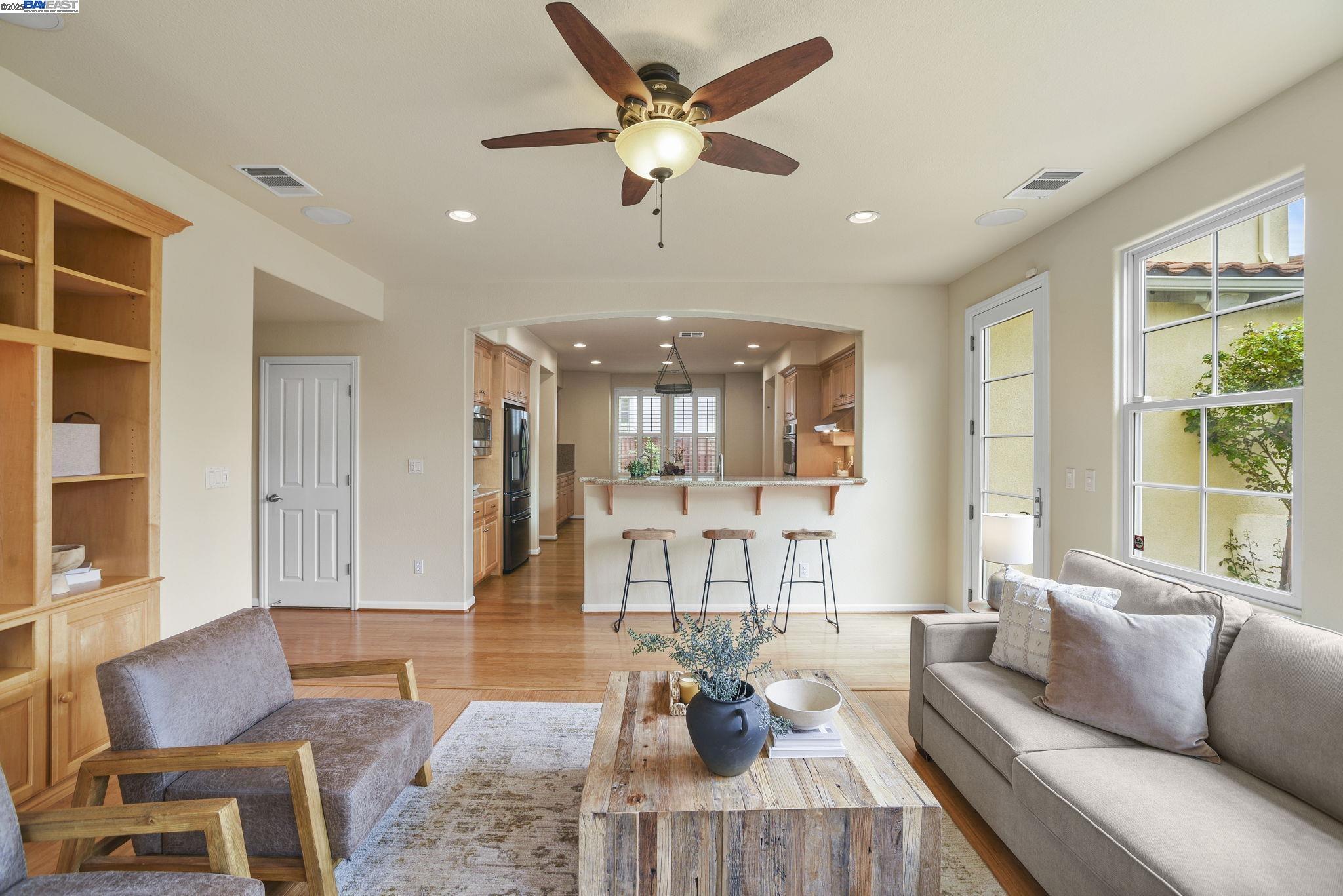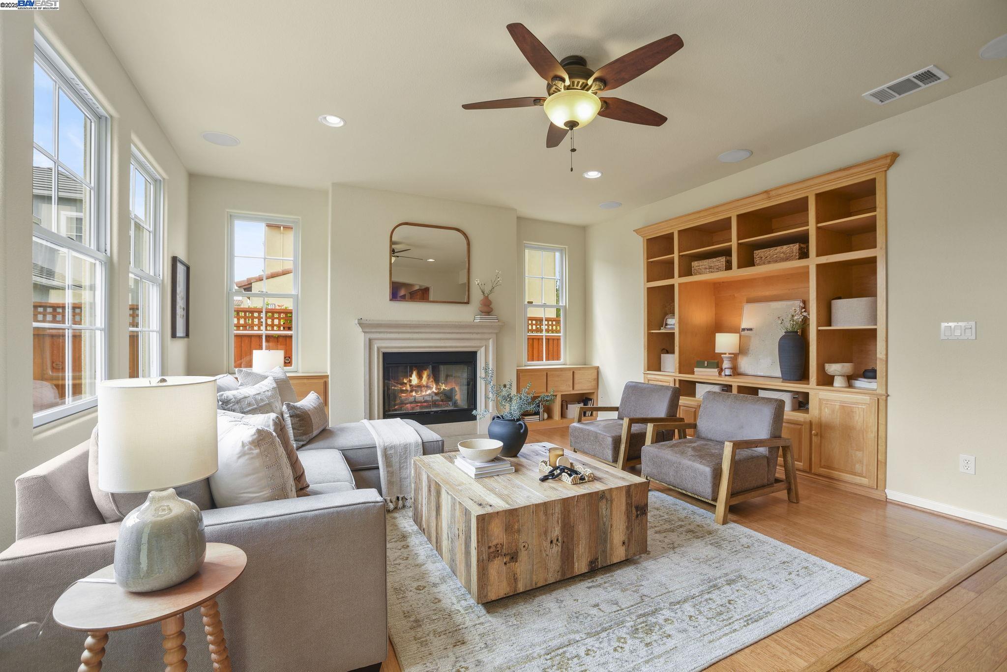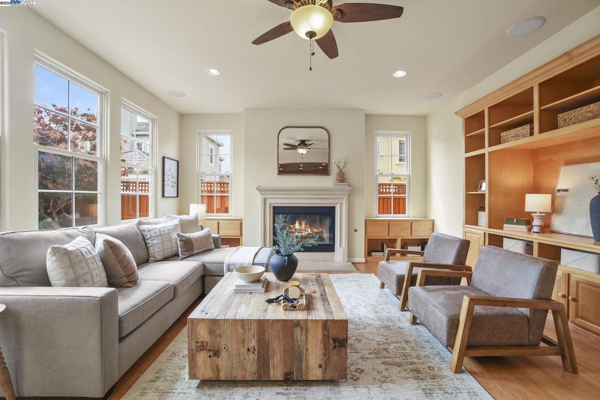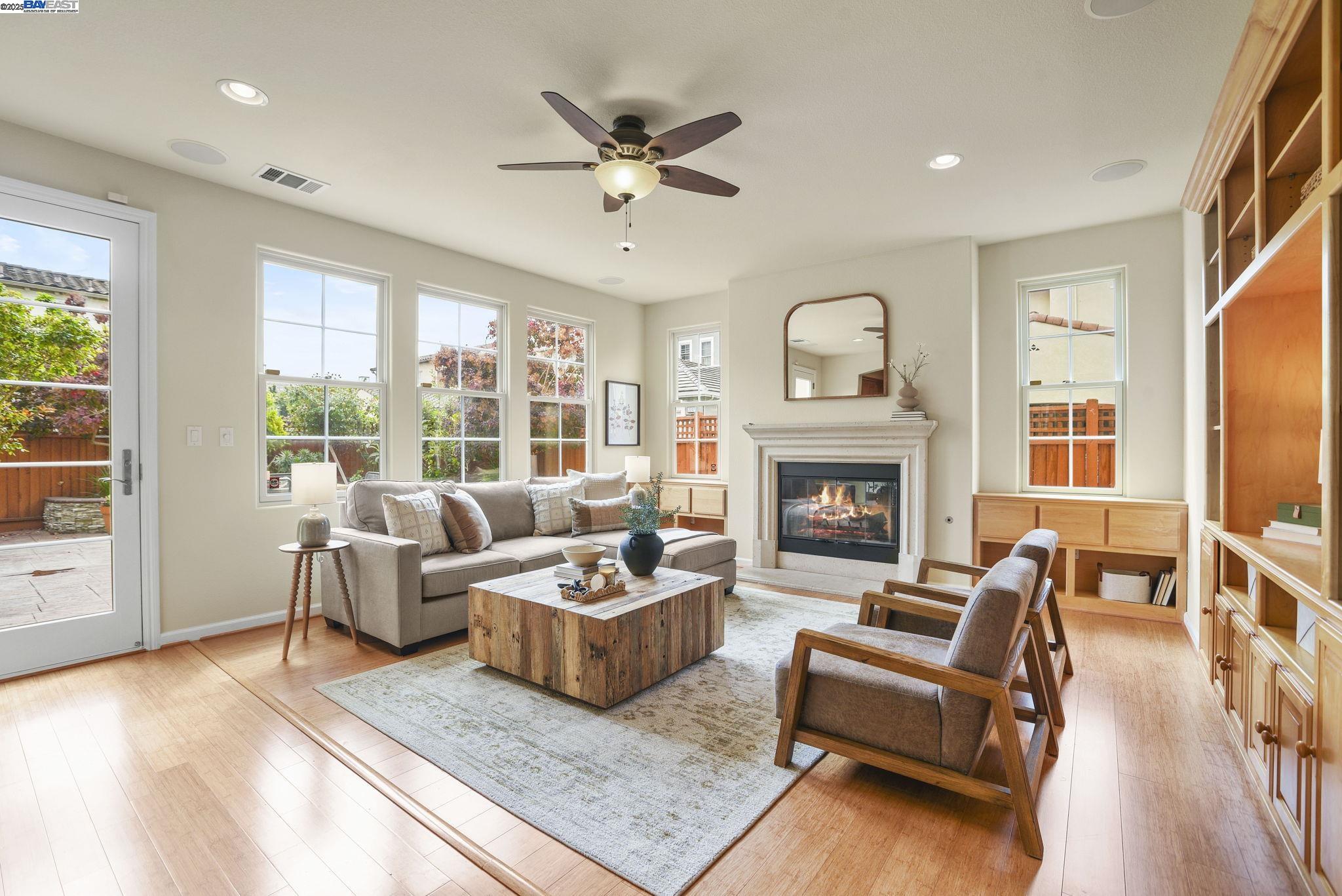 Welcome to this Model 9 Plan in the beautiful Bayport neighborhood of Alameda. Situated at the end of a quiet street, this 4-bedroom, 3-bathroom corner-lot home offers a bright and flexible layout. A soaring two-story entry opens to wood floors throughout and spacious living areas. The open kitchen with center island flows into the family room, where a fireplace and custom built-in shelving create a warm focal point. A formal living room connects seamlessly to the dining room, ideal for gatherings and entertaining. The first floor also includes a bedroom and full bath, perfect for guests or multi-generational living. Upstairs, a versatile loft offers space for an office, playroom, or lounge. The primary suite features a walk-in closet, jacuzzi tub, and separate shower, with two additional bedrooms and a full bath completing the second level. Lush landscaping surrounds this corner property, adding privacy and curb appeal. Located in Alameda's sought-after Bayport community, you'll be near parks, schools, Alameda Landing, Webster Street, the ferry, and convenient access to Oakland and beyond.