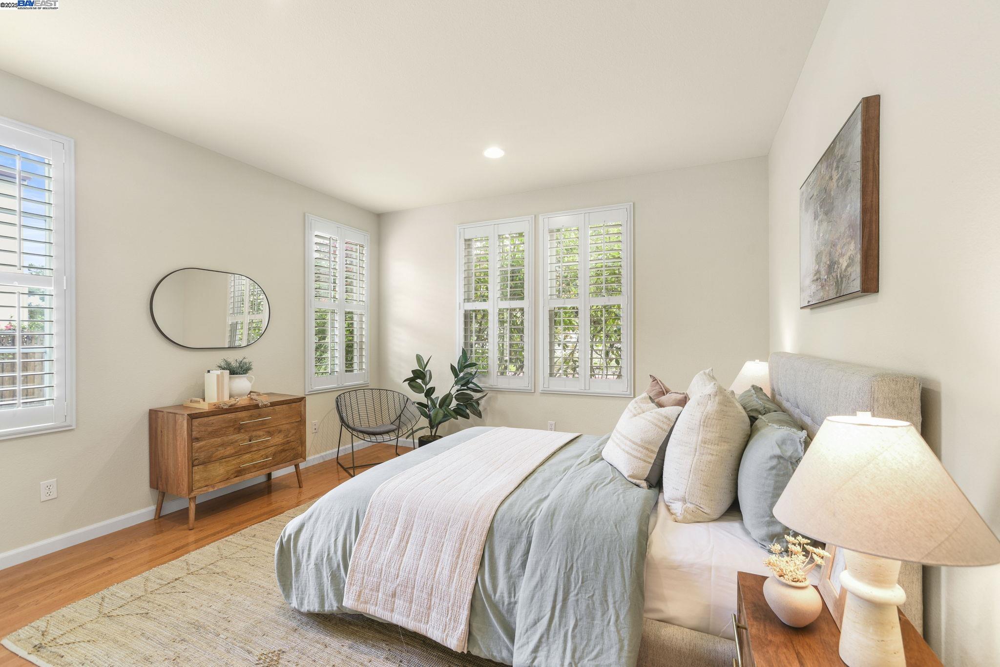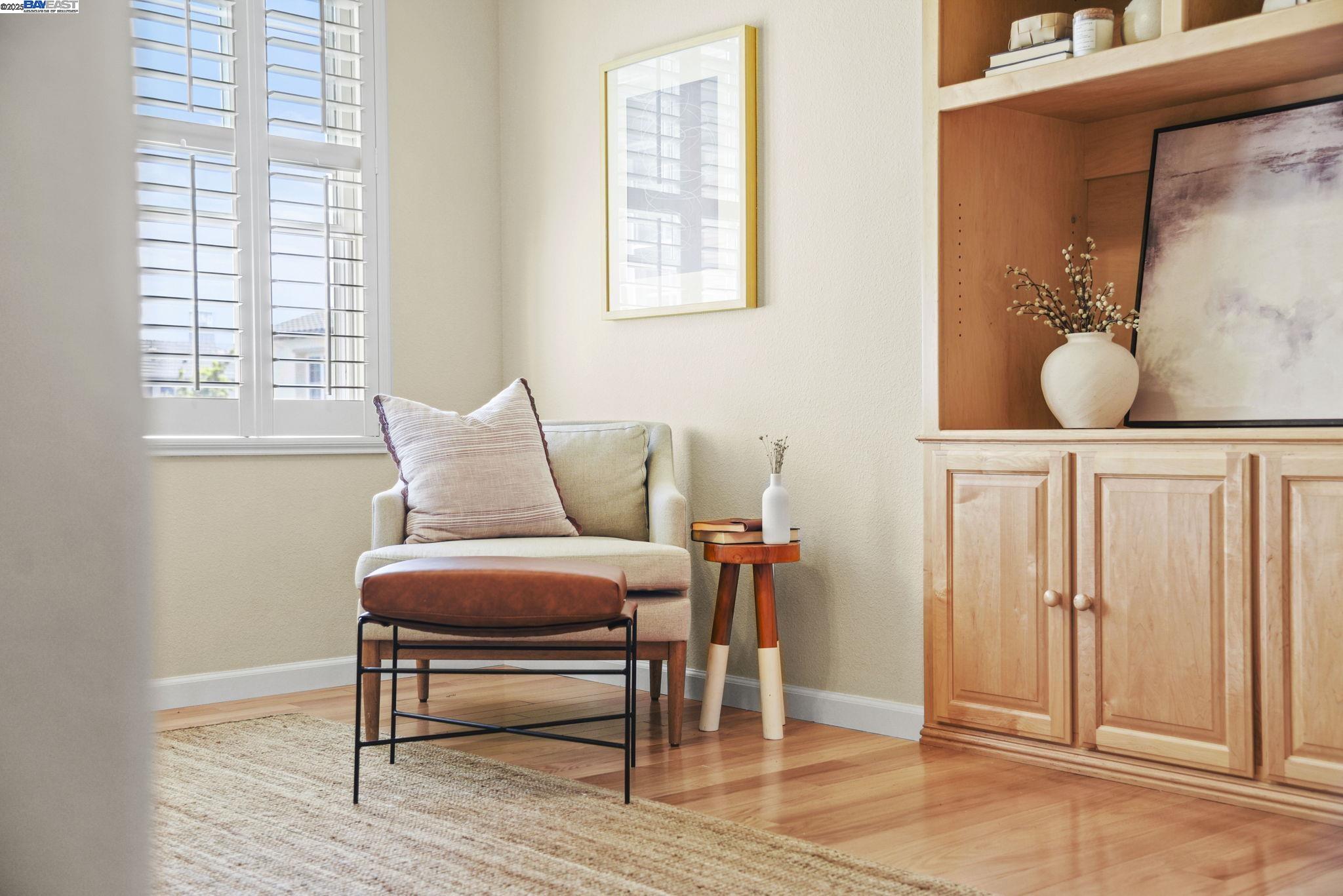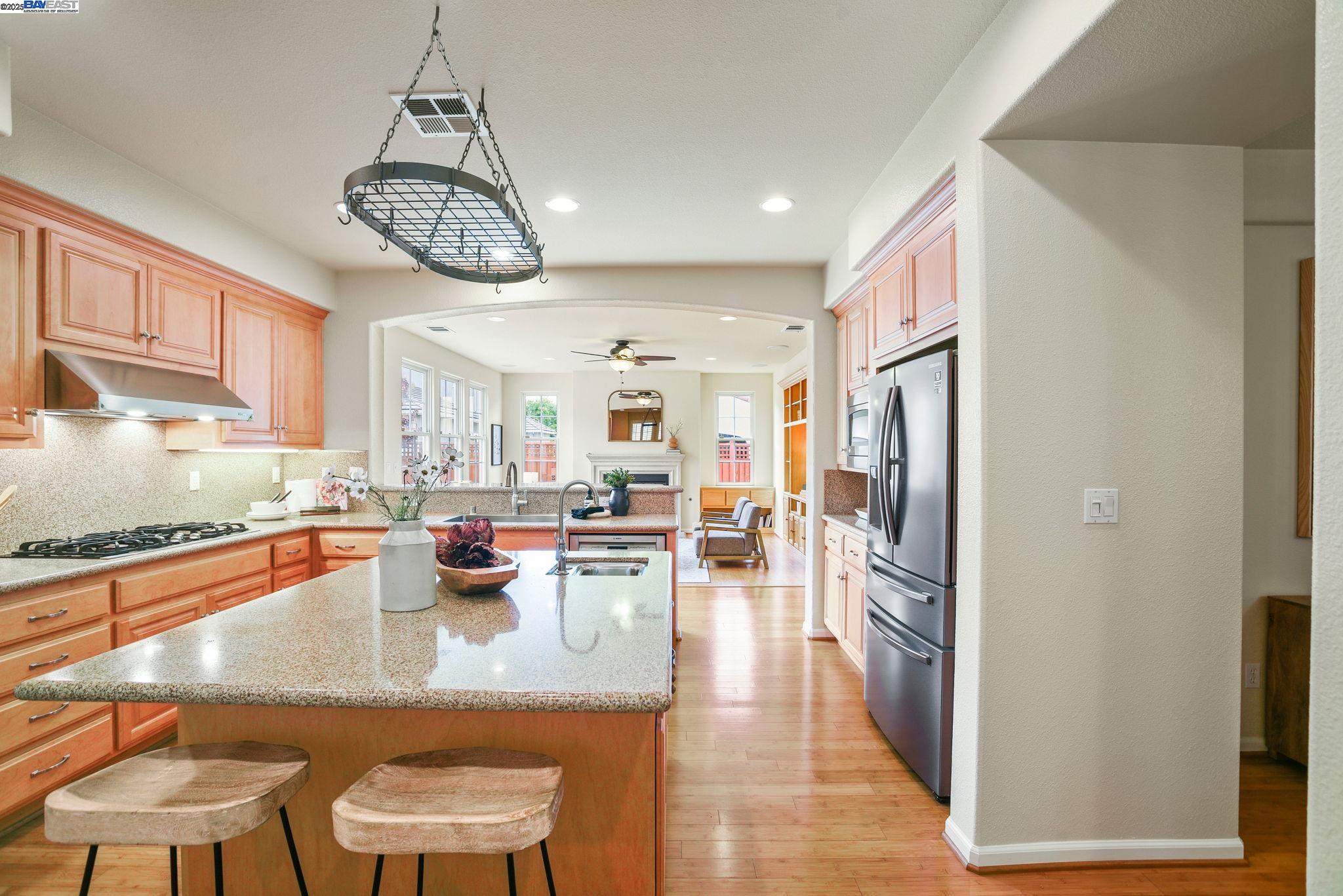 Welcome to this Model 9 Plan in the beautiful Bayport neighborhood of Alameda. Situated at the end of a quiet street, this 4-bedroom, 3-bathroom corner-lot home offers a bright and flexible layout. A soaring two-story entry opens to wood floors throughout and spacious living areas. The open kitchen with center island flows into the family room, where a fireplace and custom built-in shelving create a warm focal point. A formal living room connects seamlessly to the dining room, ideal for gatherings and entertaining. The first floor also includes a bedroom and full bath, perfect for guests or multi-generational living. Upstairs, a versatile loft offers space for an office, playroom, or lounge. The primary suite features a walk-in closet, jacuzzi tub, and separate shower, with two additional bedrooms and a full bath completing the second level. Lush landscaping surrounds this corner property, adding privacy and curb appeal. Located in Alameda's sought-after Bayport community, you'll be near parks, schools, Alameda Landing, Webster Street, the ferry, and convenient access to Oakland and beyond.