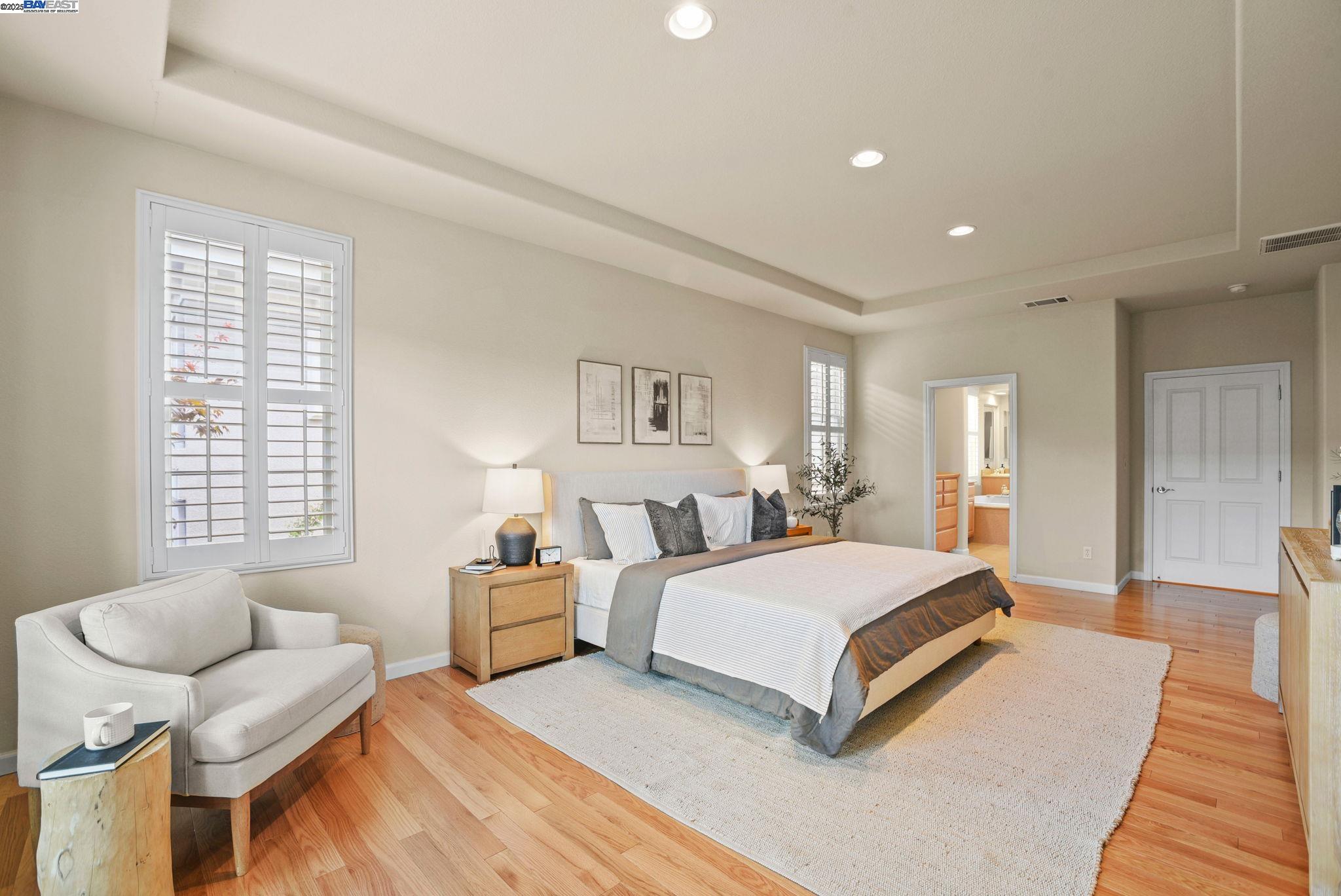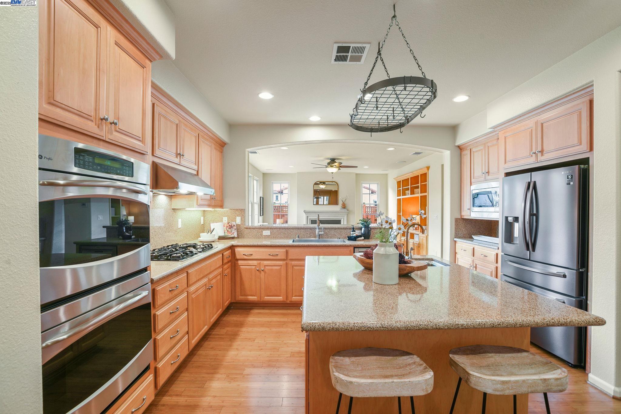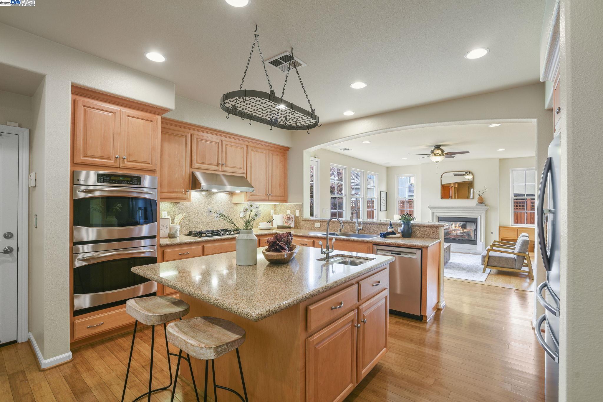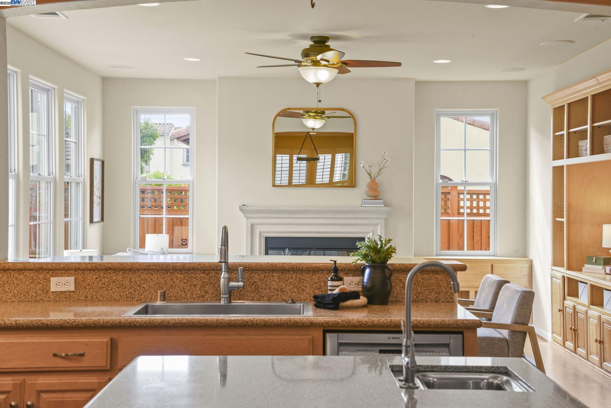 Welcome to this Model 9 Plan in the beautiful Bayport neighborhood of Alameda. Situated at the end of a quiet street, this 4-bedroom, 3-bathroom corner-lot home offers a bright and flexible layout. A soaring two-story entry opens to wood floors throughout and spacious living areas. The open kitchen with center island flows into the family room, where a fireplace and custom built-in shelving create a warm focal point. A formal living room connects seamlessly to the dining room, ideal for gatherings and entertaining. The first floor also includes a bedroom and full bath, perfect for guests or multi-generational living. Upstairs, a versatile loft offers space for an office, playroom, or lounge. The primary suite features a walk-in closet, jacuzzi tub, and separate shower, with two additional bedrooms and a full bath completing the second level. Lush landscaping surrounds this corner property, adding privacy and curb appeal. Located in Alameda's sought-after Bayport community, you'll be near parks, schools, Alameda Landing, Webster Street, the ferry, and convenient access to Oakland and beyond.